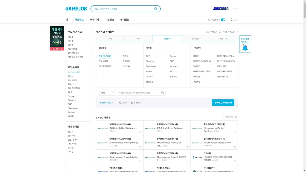 게임잡은 쉽게 말해 게임 업계의 사람인,잡코리아 같은 채용 사이트입니다.