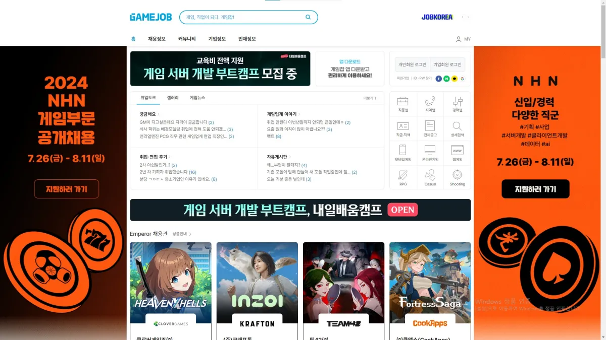 게임잡은 쉽게 말해 게임 업계의 사람인,잡코리아 같은 채용 사이트입니다.
