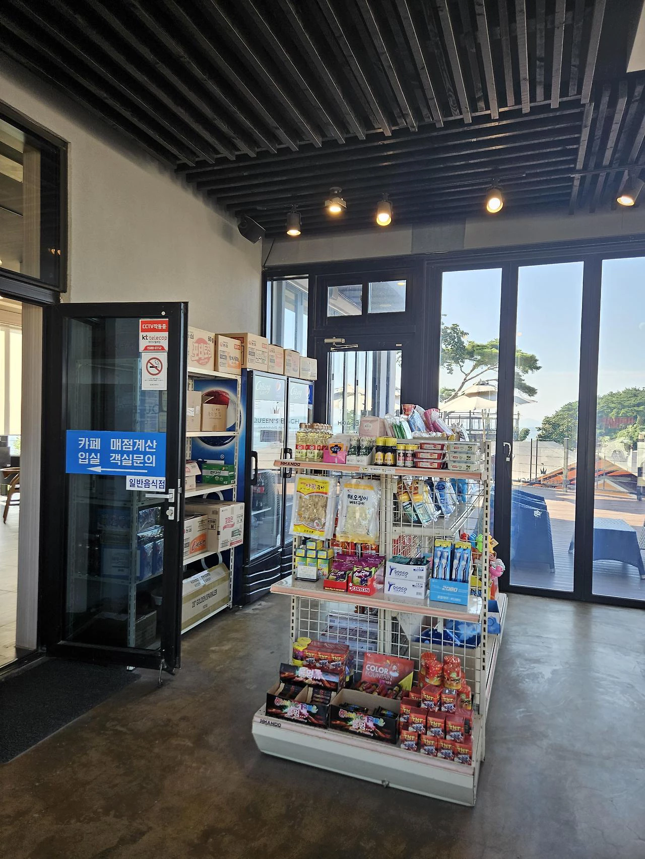 글램핑장에서 걸어서 5~10분 정도 거리에 카페 겸 매점이 있습니다.